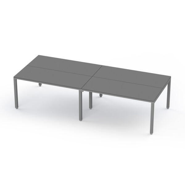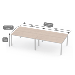 Billydesk es un sistema modular de oficina flexible y funcional. Cubiertas de melamina 16 mm con cantos PVC, estructura y patas metálicas con pintura electrostática, niveladores y ensamble sencillo. Resistente y durable, ideal para 8-10 usuarios.