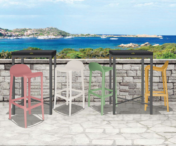 patas, asiento y respaldo: de dos piezas en polipropileno de alta resistencia y duración para intemperie, resistente a los rayos ultravioleta (UV) y al ambiente salino.