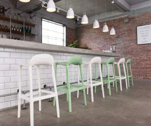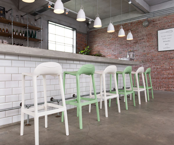 patas, asiento y respaldo: de dos piezas en polipropileno de alta resistencia y duración para intemperie, resistente a los rayos ultravioleta (UV) y al ambiente salino. color: amarillo, blanco, salmón, capuccino o verde. peso máximo de resistencia: 130 kgs.