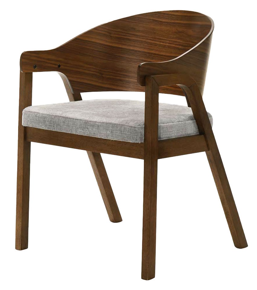 Su diseño combina comodidad y estilo, con un asiento tapizado en tela suave y resistente, y patas de madera sólida que brindan estabilidad y durabilidad.