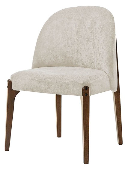Diseño moderno y elegante con asiento en tela y patas de madera sólida rubber.