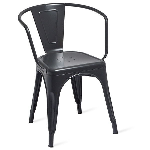 Silla de metal gris.