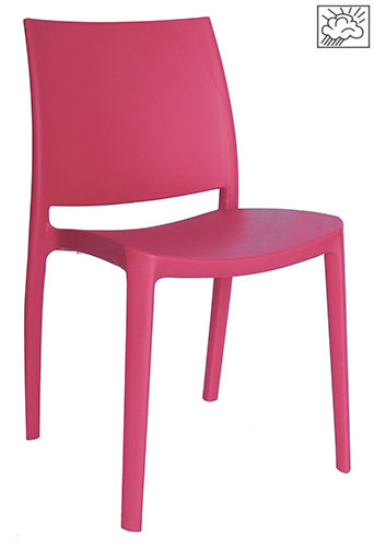 respaldo, asiento y patas:de una sóla pieza en polipropileno de alta resistencia y duración para intemperie, resistente a los rayos ultravioleta (UV) y al ambiente salino. color: azul, verde, blanco, rojo, capuccino, naranja, gris, amarillo, fucsia. peso máximo de resistencia: 130 kgs.