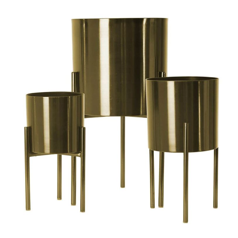 TRIO DE MACETAS DORADAS