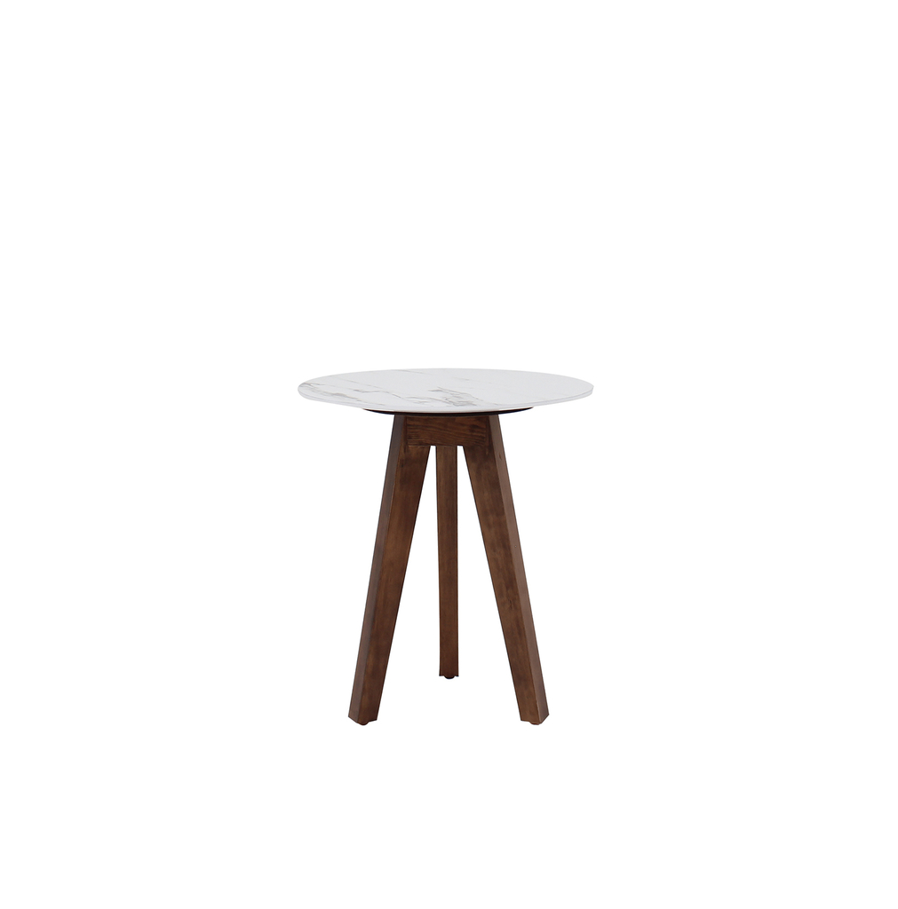 Mesa chica Pollock cubierta en color nogal.