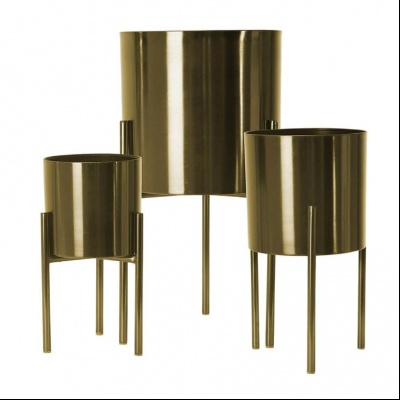 TRIO DE MACETAS DORADAS